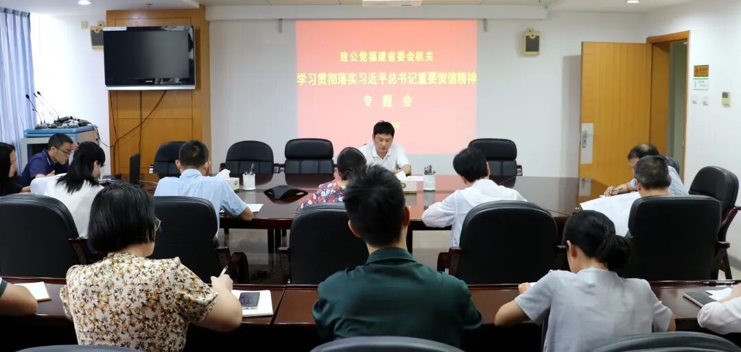 9月23日,致公党福建省委会机关召开学习贯彻落实习近平总书记重要贺信精神专题学习会。省委会专职副主委兼秘书长王惠忠出席会议并讲话。