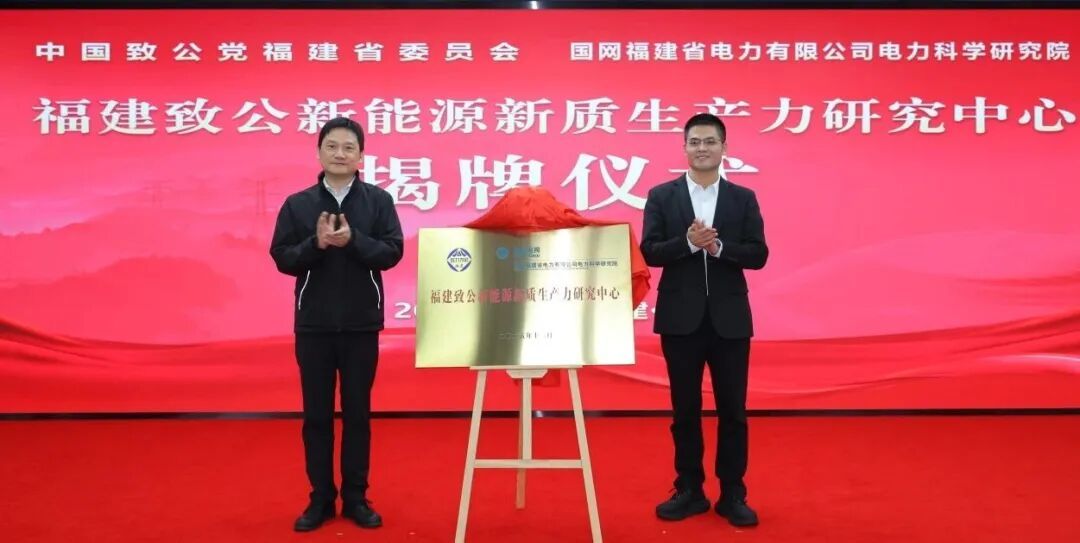 12月5日,由致公党福建省委会、国网福建省电力有限公司电力科学研究院共同建设的“福建致公新能源新质生产力研究中心”在榕揭牌。致公党省委会专职副主委兼秘书长王惠忠,国网福建电科院党委书记、副院长杨绵芳出席共建签约仪式并为基地揭牌。