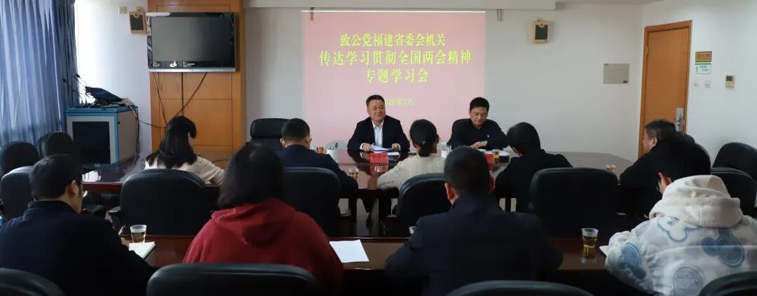 3月18日,致公党福建省委会机关召开专题学习会,传达学习贯彻习近平总书记在全国两会期间的重要讲话精神和全国两会精神。全国人大代表、致公党福建省委会主委罗恩平传达有关精神。致公党福建省委会专职副主委兼秘书长王惠忠主持会议。